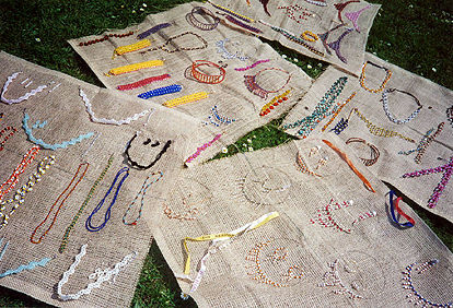 Aus Stoff geknüpft oder mit Perlen aufgezogen - Halsbänder, Kopfschmuck und Armbänder lassen die Mädchen bei ihrer Arbeit entstehen.
