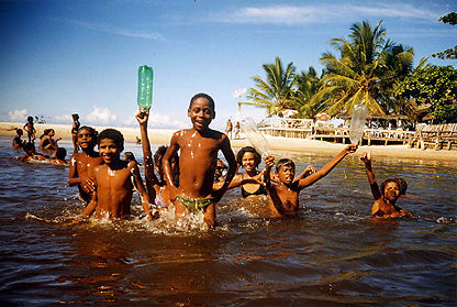 geht es an den Strand. Schwimmen, Fußballspielen, Faulenzen und gute